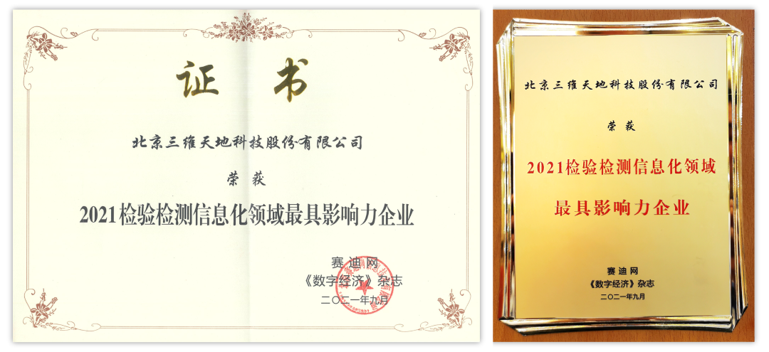 數(shù)智創(chuàng)新 | 三維天地蟬聯(lián)榮獲“2021檢驗檢測行業(yè)信息化最具影響力企業(yè)”
