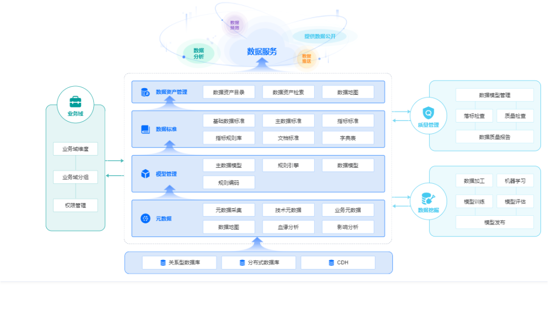 三維天地數(shù)據(jù)資產(chǎn)管理平臺,是一套集元數(shù)據(jù)管理、數(shù)據(jù)標(biāo)準(zhǔn)管理、數(shù)據(jù)質(zhì)量管理、數(shù)據(jù)集成管理、數(shù)據(jù)模型管理、主數(shù)據(jù)管理、數(shù)據(jù)資產(chǎn)管理、數(shù)據(jù)安全管理、數(shù)據(jù)生命周期管理、數(shù)據(jù)清洗及數(shù)據(jù)分析功能的一體化數(shù)據(jù)治理平臺,有效打通數(shù)據(jù)治理各個環(huán)節(jié),支持?jǐn)?shù)據(jù)治理各核心領(lǐng)域的協(xié)調(diào)統(tǒng)一管理,實現(xiàn)數(shù)據(jù)治理工作有效落地,從而更好地釋放數(shù)據(jù)價值,改進決策、縮減成本、降低風(fēng)險,助力銀行業(yè)數(shù)字化轉(zhuǎn)型,助推高質(zhì)量發(fā)展。