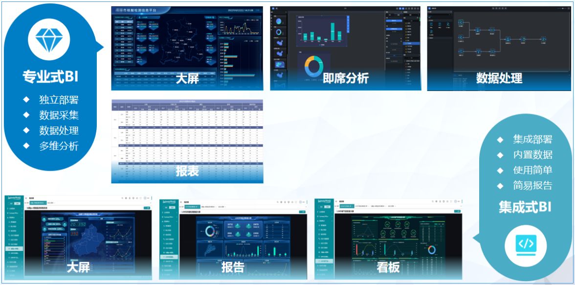 集成式BI是LIMS系統(tǒng)內(nèi)置的將內(nèi)部數(shù)據(jù)到數(shù)據(jù)可視化展現(xiàn)的一種解決方案。集成式BI提供20余種圖表組件及對(duì)應(yīng)的輔助配置、輔助工具,通過(guò)拖拽式的場(chǎng)景設(shè)計(jì),滿(mǎn)足用戶(hù)對(duì)于大屏、報(bào)告和看板的需求。