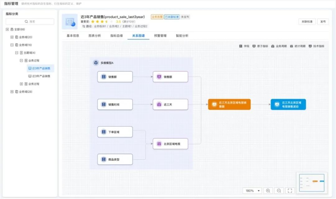 平臺(tái)將指標(biāo)拆分成更細(xì)粒度的原子指標(biāo)、統(tǒng)計(jì)周期、業(yè)務(wù)限定去管理,提高指標(biāo)的開發(fā)速度,提升指標(biāo)的復(fù)用性、統(tǒng)一指標(biāo)的業(yè)務(wù)和技術(shù)口徑。如果指標(biāo)異常,還能實(shí)現(xiàn)指標(biāo)溯源,同時(shí)提供了從指標(biāo)標(biāo)準(zhǔn)到定義到管理的完整能力。