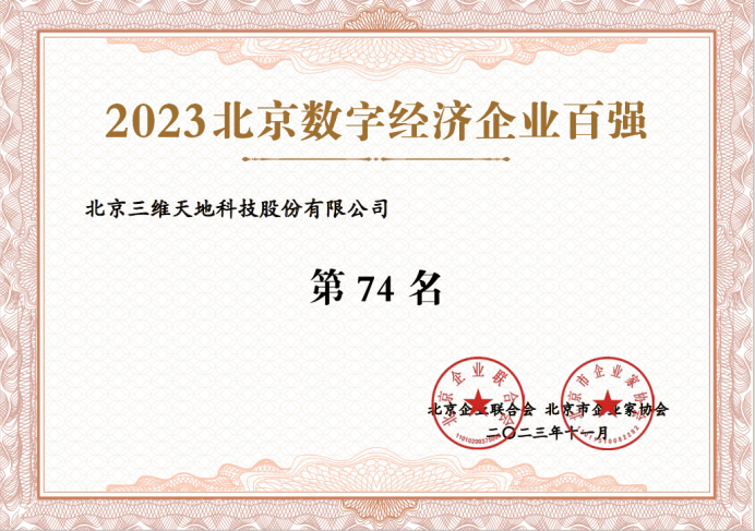 持續(xù)蟬聯(lián)!三維天地入選2023北京數(shù)字經濟企業(yè)百強榜單