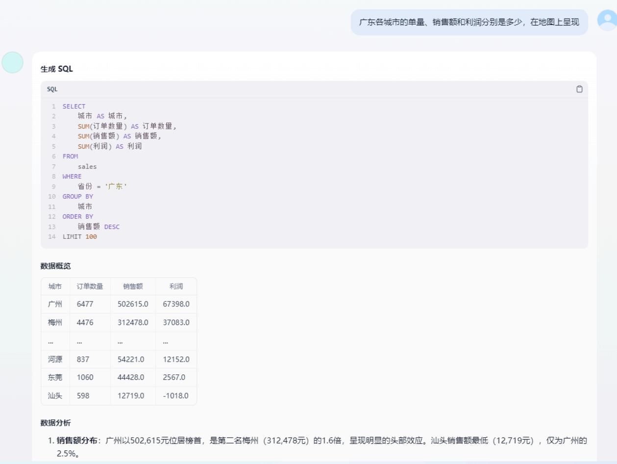 自然語言交互:通過對話式輸入(如 “對比Q3各區(qū)域銷售額” )自動生成分析邏輯,無需編寫代碼;