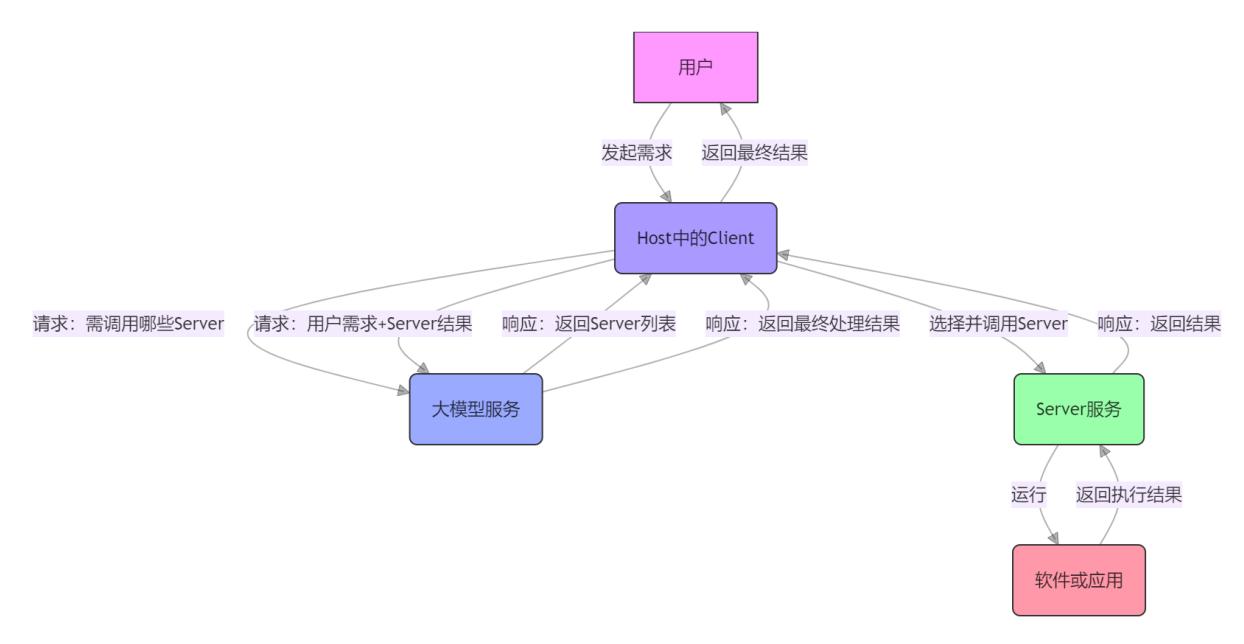 SunwayLink平臺(tái)中的MCP核心組件包含Host、Client、Server,Host內(nèi)置了 Client的應(yīng)用程序,可以是APP、Agent、Web應(yīng)用、桌面應(yīng)用等形態(tài),Client是大模型與Server之間的橋梁,Server負(fù)責(zé)處理來(lái)自Client的請(qǐng)求、調(diào)用各種資源、返回相應(yīng)的結(jié)果或數(shù)據(jù),MCP工作流程如下: