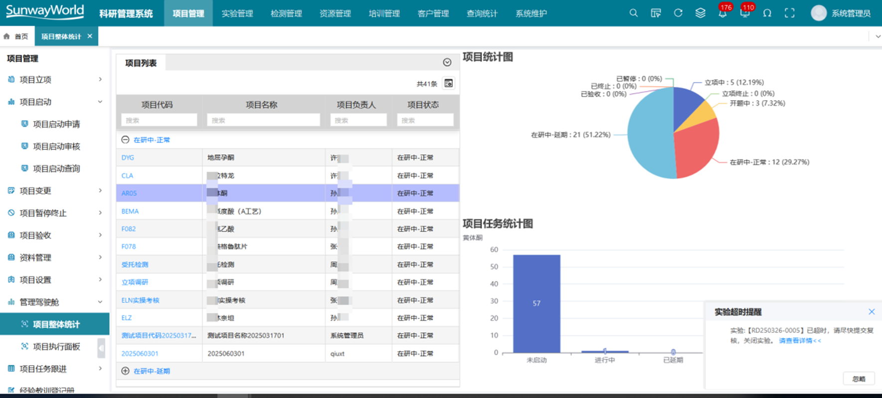 RDMS系統(tǒng)支持從項(xiàng)目立項(xiàng)、階段劃分、任務(wù)分配到資源調(diào)度與進(jìn)度追蹤的全過程管理,專為藥品研發(fā)多項(xiàng)目并行設(shè)計(jì)。系統(tǒng)內(nèi)置甘特圖、WBS結(jié)構(gòu)、關(guān)鍵路徑管理與任務(wù)依賴關(guān)系設(shè)置,自動(dòng)生成進(jìn)度報(bào)告與延期提醒。項(xiàng)目經(jīng)理可按研究階段(如靶點(diǎn)發(fā)現(xiàn)、臨床前、IND申報(bào))設(shè)定目標(biāo),分配實(shí)驗(yàn)任務(wù),追蹤各責(zé)任人的執(zhí)行情況。系統(tǒng)還能集成預(yù)算模塊,實(shí)現(xiàn)人力、設(shè)備、材料等資源調(diào)度與成本控制,提升項(xiàng)目執(zhí)行的透明度與效率。