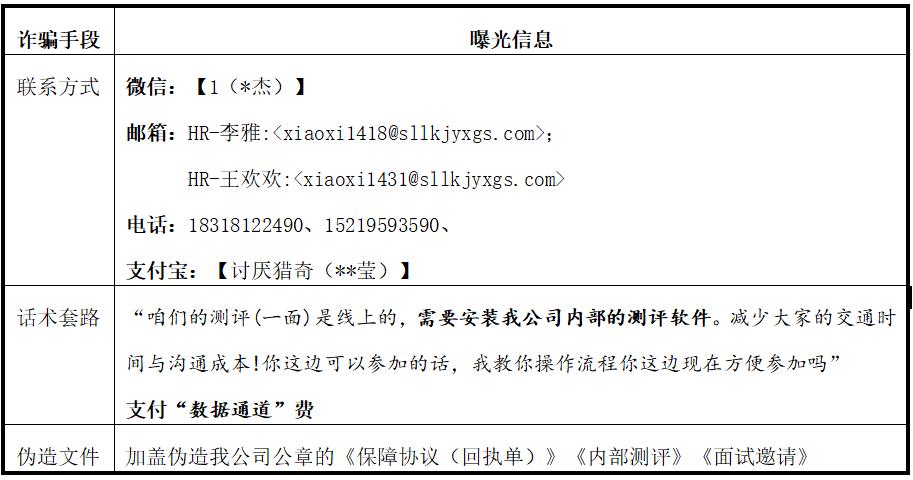 近期,我公司發(fā)現(xiàn)有不法分子冒用我公司名義,通過微信、短信、郵件等非法手段,以“虛假招聘職位”為幌子,誘導(dǎo)求職者支付所謂的“數(shù)據(jù)通道”費、“安裝內(nèi)部測評軟件”等進行詐騙。此類違法行為不僅嚴(yán)重侵害了廣大求職者的合法權(quán)益,也對我公司聲譽和社會形象造成了極其惡劣的影響。為了維護公眾利益、保障公司聲譽,我公司現(xiàn)發(fā)布此嚴(yán)正聲明: 以上信息均為詐騙分子偽造請廣大求職者提高警惕,切勿輕信!