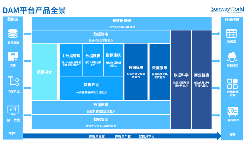 該平臺(Sunway-DAM V13)是三維天地借助大數(shù)據(jù)、機器學(xué)習(xí)、自然語言處理、知識圖譜等新興技術(shù),在原有產(chǎn)品基礎(chǔ)上進行的全體系的智能化升級,構(gòu)建的全棧、一體、智能的企業(yè)級平臺,形成了一大平臺、三大產(chǎn)品、十三大模塊的完整產(chǎn)品矩陣。